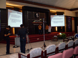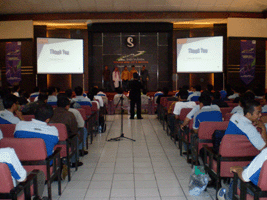 Seluruh peserta yang terdiri dari para pegawai PT. Sari Husada konsentrasi mengikuti acara dengan melihat presentasi melalui tayangan LCD Projector ![]() Tampak gambar hasil pemasangan sewa screen / layar builtup 2x3m front ![]() Penempatan X banner di tempat registrasi peserta. Sampel rental lcd projector di yogyakarta |